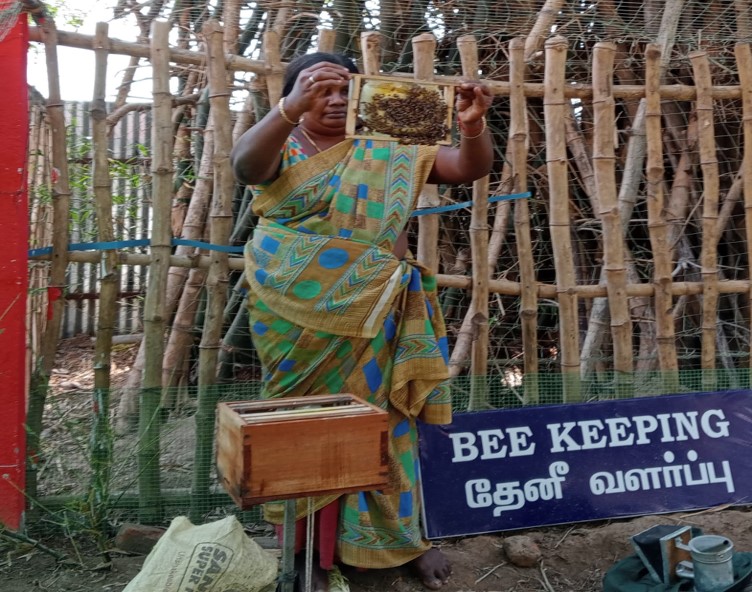 Unsere Partnerorganisation SEVAI führt in zwei Schulungszentren für diese Frauen und Männer 30 Schulungskurse rund um Produktion und Vermarktung landwirtschaftlicher Erzeugnisse durch: Gemüseanbau, Algenfarm, Bienenzucht, Pilzzucht, Geflügelzucht etc.
